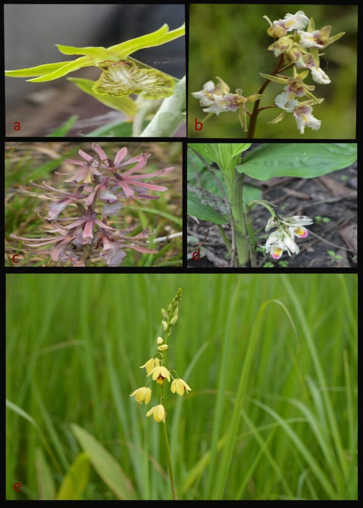 Fig.1: a. Eulophia andamanensis, b. Eulophia bicallosa, c. Eulophia dabia, d. Eulophia picta, e. Eulophia mannii