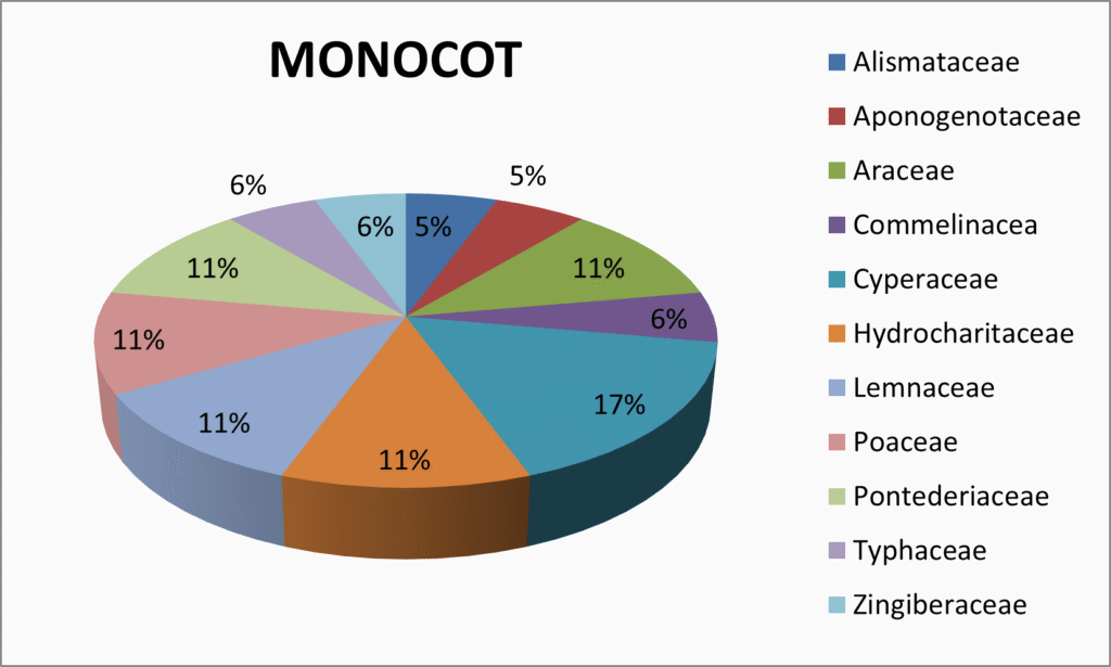 Fig. 3: Graphical representation of each family of monocot plant species occupied in the Kapla beel.